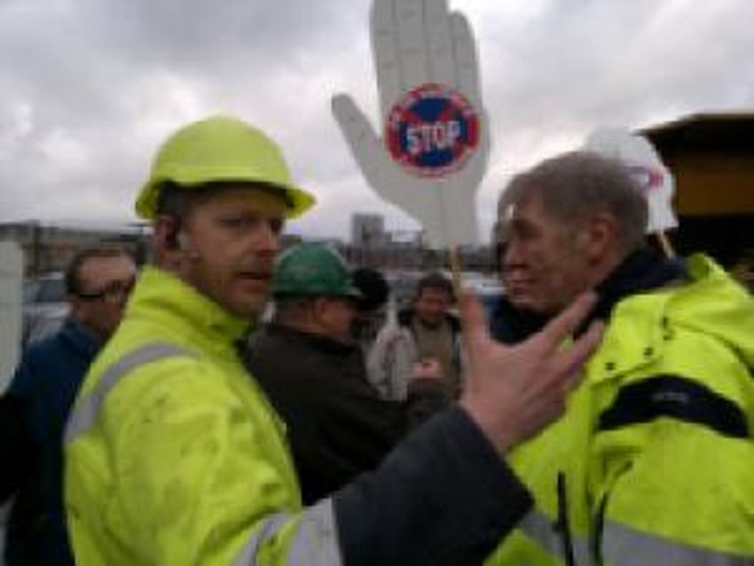 I skuret sidder 14-15 af Jans kolleger, alle er de organiserede medlemmer af BJMF og Dansk El-forbund, siger Jan. De har sat sig ‘på røven’. Det har de gjort siden onsdag den 11. januar. De er utilfredse med, at firmaet ikke vil indgå overenskomst med deres fagforening.